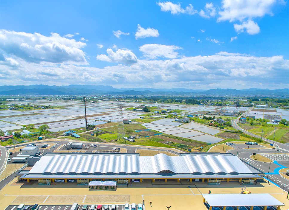 道の駅 国見 あつかしの郷の「あつかし」は、 町の象徴・阿津賀志山に由来します。 波形の大きな屋根は、阿津賀志山防塁の曲線、 桃をはじめとした果物のやわらかな丸み、 そして地元の人々の温かな心を表現しています。 人口8,000人ほどの小さな町に、 ひと・もの・食・歴史が集う“交流の拠点”として生まれた道の駅です。