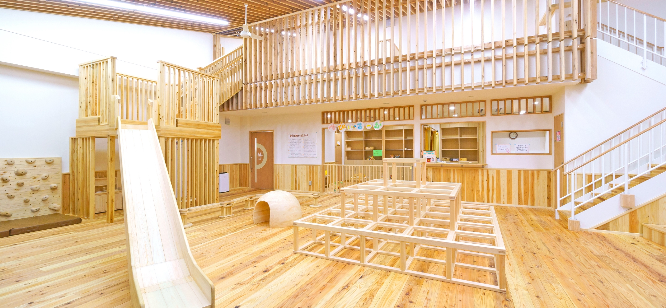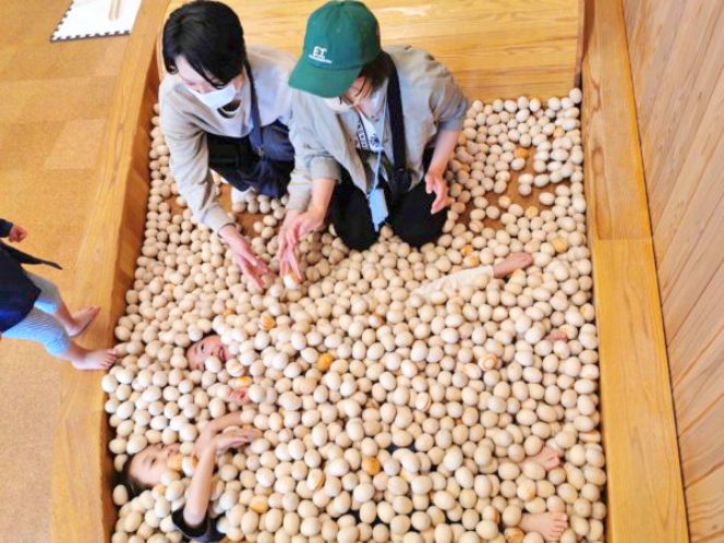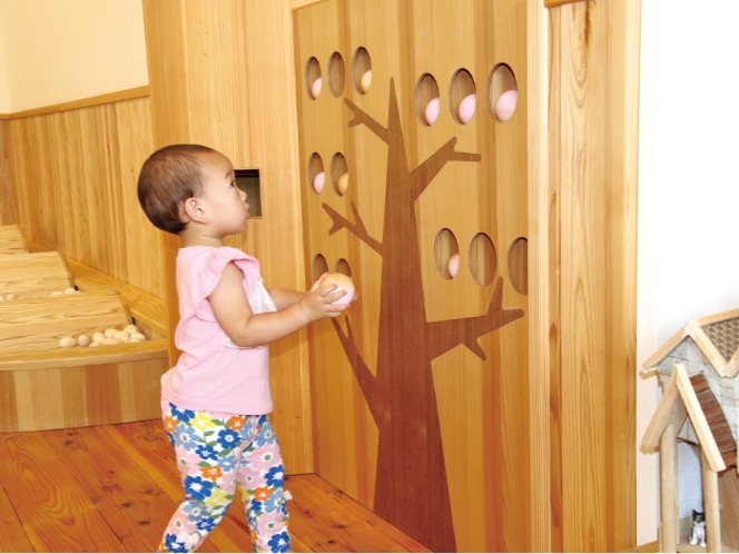 優しく、温かい木のおもちゃに囲まれたスペースで、子育てをみんなで共有。 子どもを真ん中に、子どもと一緒にママとパパのネットワークも芽生えます。 屋内施設のため、親子で天候に左右されることなく木のおもちゃで遊ぶことができます。